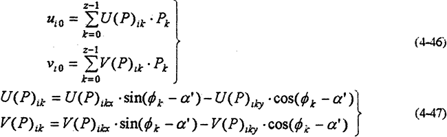 式(4-51)~(4-53)中U(Fj)ikx,U(Fj)iky,V(Fj)ikx,V(Fj)iky為行星齒板柔度系數(shù)的值,由磁盤文件提供計算。Ckx,Cky由式(4-30)及式(4-33)計算。