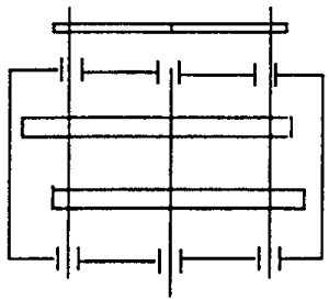 本研究在一個(gè)傳動(dòng)裝置中采用兩個(gè)成一定相位差的平行雙曲柄四桿機(jī)構(gòu),它們的連桿內(nèi)齒輪與兩個(gè)擺線輪相嚙合的情況。為了實(shí)現(xiàn)靜力平衡,兩個(gè)平行雙曲柄四桿機(jī)構(gòu)的相位差設(shè)計(jì)為π,結(jié)構(gòu)型式見(jiàn)圖2.5。