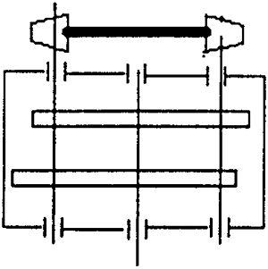 圖2.3是本實(shí)用新型的實(shí)施結(jié)構(gòu)圖之一。下面結(jié)合附圖予以說(shuō)明:箱體由箱蓋和箱座構(gòu)成,兩根高速軸3、15和一根低速軸9的兩端由軸承4、14和11支撐在箱座的軸承孔內(nèi),軸承外側(cè)裝有端蓋和密封圈;同一根高速軸上有兩個(gè)相位差成180°的偏心軸頸,偏心軸頸相當(dāng)于曲柄機(jī)構(gòu),其中環(huán)板起連桿的作用;環(huán)板內(nèi)孔的圓周上均布著針齒銷7,針齒銷外有滾動(dòng)套8;當(dāng)兩塊環(huán)板5、18上針齒銷與固聯(lián)在低速軸上且相應(yīng)相位差成180°的兩個(gè)擺線齒輪12、20嚙合時(shí),體內(nèi)的兩根高速軸固聯(lián)相同的小齒輪119、24,在低速軸上空套一個(gè)過(guò)橋的大齒輪23,兩對(duì)外嚙合驅(qū)動(dòng)雙曲柄順利通過(guò)死點(diǎn)。