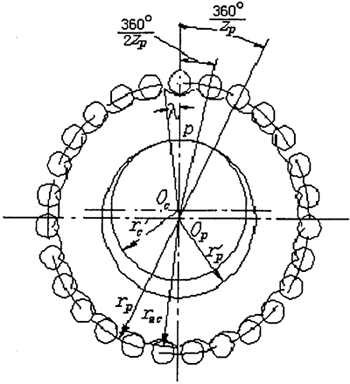 由(2-8)可知,擺線輪的實(shí)際齒形決定于rp,α,rrp,Zp,△rp,△rrp,δ這七個(gè)獨(dú)立參數(shù)。