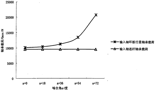 圖3.12 (連桿式)嚙合角對軸承最大載荷的影響