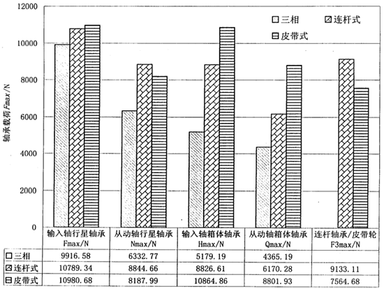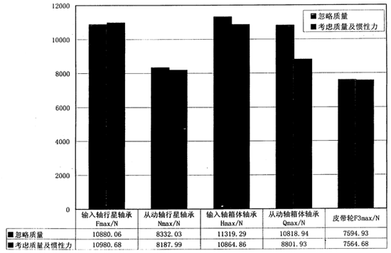 圖3.23 考慮質量時三類減速器軸承載荷比較