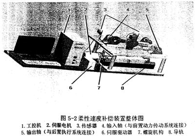 基于圖5-1所示機(jī)構(gòu),配置伺服驅(qū)動(dòng)裝置、傳感器以及計(jì)算機(jī)控制系統(tǒng),獲得該柔性速度補(bǔ)償裝置的原型,如圖5-2所示。