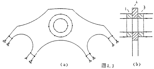 為了分析方便,我們依然取疊片的2/n來分析,當聯(lián)軸器傳遞扭矩時,疊片受到主、從動法蘭盤上的聯(lián)接螺栓的作用,其作用的載荷是反對稱載荷。