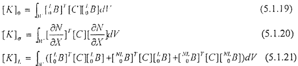 對(duì)式5.1.18,我們將等號(hào)左端三個(gè)矩陣的各用[K]T表示,稱(chēng)切線(xiàn)剛度陣,它表示了載荷增量與位移增量之間的關(guān)系。