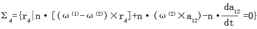 由(2-5-1)式知,它是r(1)、r(2)需滿(mǎn)足的微分方程。Σ1、Σ2在接觸的最初階段,接觸參考點(diǎn)在接觸力作用下,隨著Σ1、Σ2的相對(duì)運(yùn)動(dòng),變形逐漸增大,在此階段,