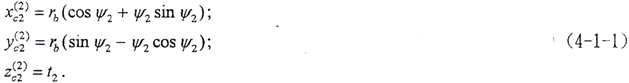內(nèi)齒輪為直齒,其端面齒形及坐標(biāo)關(guān)系如圖3-3所示。設(shè)端面齒廓線為漸開線,xc2坐標(biāo)通過(guò)漸開線在基圓上的起點(diǎn),(o,xc2,yc2,zc2)坐標(biāo)下的齒面方程為