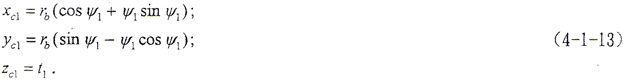 設(shè)中截面齒廓為漸開線,xc1坐標(biāo)軸線通過(guò)漸開線在基圓上的起點(diǎn),(o,xc1,yc1,zc1)坐標(biāo)下的齒面方程為
