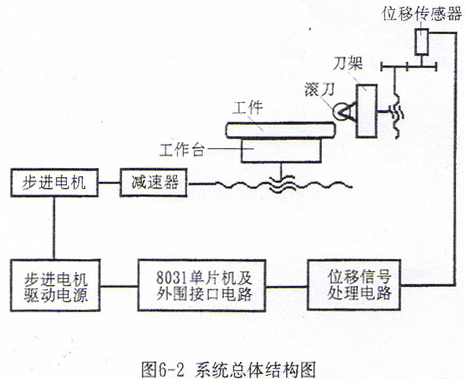 整個系統(tǒng)由數(shù)控制計算機軟硬件、步進電機伺服機構(gòu)、位移傳感器和機床四大部分組成。系統(tǒng)總體結(jié)構(gòu)如圖6-2所示。改造后的機床實物照片見附錄。