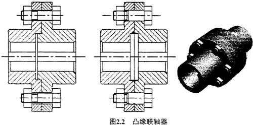 如圖2.2所示,凸緣聯(lián)軸器由兩個帶凸緣的半聯(lián)軸器和一組螺栓組成。這種聯(lián)軸器有兩種對中方式:一種是通過分別具有凸槽和凹槽的兩個半聯(lián)軸器的相互嵌合來對中,半聯(lián)軸器采用普通螺栓聯(lián)接;另一種是通過鉸制孔用螺栓與孔的緊配合對中,當(dāng)尺寸相同時后者傳遞的轉(zhuǎn)矩較大,且裝拆時軸不必作軸向移動。