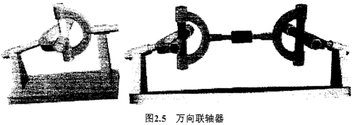 萬向聯(lián)軸器可分為單萬向聯(lián)軸器和雙萬向聯(lián)軸器,用于聯(lián)接軸線相交的兩軸,以傳遞轉(zhuǎn)動和扭矩,能夠保證在兩軸軸線夾角在35°到45°發(fā)生變化時,保證所聯(lián)接的兩軸連續(xù)回轉(zhuǎn),可靠地傳遞扭矩。這種聯(lián)軸器主要由兩個安裝在主,從動軸軸端上的叉形接頭(單叉),中間聯(lián)接件(十字塊),塞銷和銷桿組成,結(jié)構(gòu)如圖2.5。