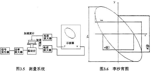 當被測的阻尼較大時,幅頻性曲線和峰值變得不明顯或甚至不出現(xiàn),這時可用李沙育圖法。該法的測量系統(tǒng)3.5所示