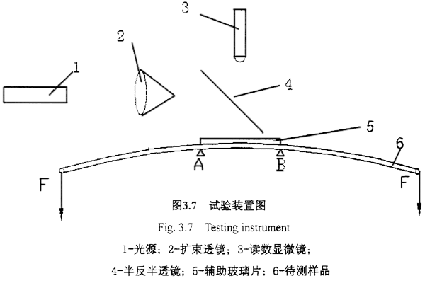 如下圖3.7所示,在A、B兩支點上,放一截面為矩形,長度為L的試件,兩端加外力F(集中力),使試件產(chǎn)生無損彎曲。
