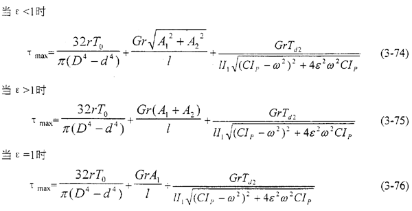 比較式(3-74),(3-75),(3-76)可知,由于 ,所以當(dāng)阻尼系數(shù)等于臨界阻尼系數(shù)時(shí),產(chǎn)生的剪切應(yīng)力最小,此時(shí) 。由于對(duì)于一定的材料制作的聯(lián)軸器,因?yàn)椴牧系淖枘崽匦允且欢ǖ模虼嗽谝院舐?lián)軸器的設(shè)計(jì)過(guò)程中,可以通過(guò)控制兩端的轉(zhuǎn)動(dòng)慣量,或者通過(guò)改變聯(lián)軸器本身的尺寸來(lái)控制它的扭轉(zhuǎn)剛度,力求使 的值盡可能的接近阻尼系數(shù),從而減少產(chǎn)生的剪切力,提高聯(lián)軸器的工作狀態(tài)和延長(zhǎng)聯(lián)軸器的使用壽命。