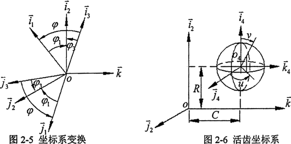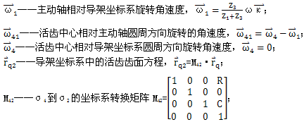 為建立該傳動的嚙合方程,使在不同坐標(biāo)系中的各個矢量進行計算,需將所有矢量轉(zhuǎn)換到統(tǒng)一的坐標(biāo)系中,為方便求解,將所有矢量均轉(zhuǎn)換到導(dǎo)架的坐標(biāo)系σ2中。