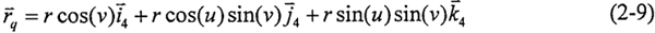 圓柱正弦活齒傳動中的活齒為規(guī)則球體,則其齒面方程即為球面方程,活齒坐標(biāo)系如圖2-6 所示,活齒齒面方程用球面坐標(biāo)表達為: