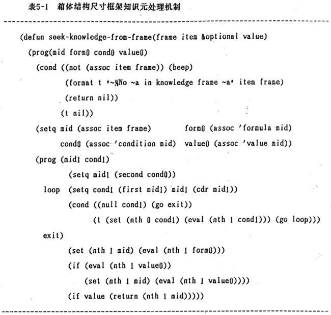 最后,測(cè)試取值條件(value)側(cè)面,若對(duì)取值有限制,則檢驗(yàn)所計(jì)算值是否滿足紅束條件;如對(duì)delta值的限制,若delta≤8,則取delta=8。對(duì)箱體知識(shí)的求值過(guò)程的LISP函數(shù)如表5-1: