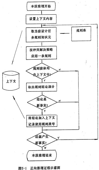 正向推理系統(tǒng)中,用戶先輸入與當(dāng)前問(wèn)題有關(guān)的信息,構(gòu)成當(dāng)前數(shù)據(jù)庫(kù)(上下文)。正向推理的示意圖如圖5-l。