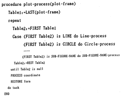 計算機(jī)各種語言以及各種繪圖軟件包各具風(fēng)格,繪圖指令各種各樣,但萬變不離其宗。因而就有可能形成一種通用的機(jī)制。作者在這里研制了一種較通用的繪圖指令生成器,其原理是通過分析各種繪圖軟件包的各種繪圖指令,在盡可能廣泛的情況下,使繪圖指令生成器的內(nèi)部,包含各種繪圖指令。同時,繪圖指令生成器也可以通過編輯或輸入的方法進(jìn)一步擴(kuò)充繪圖指令?梢酝ㄟ^二種方式改變輸出繪圖文件的格式:一是通過編輯修改輸出語句格式;二是通過教導(dǎo)式的學(xué)習(xí)方法改變繪圖文件的物出格式,如下過程: