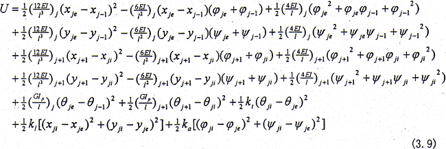 第j個軸段在x方向的彎曲彈性勢能[91]