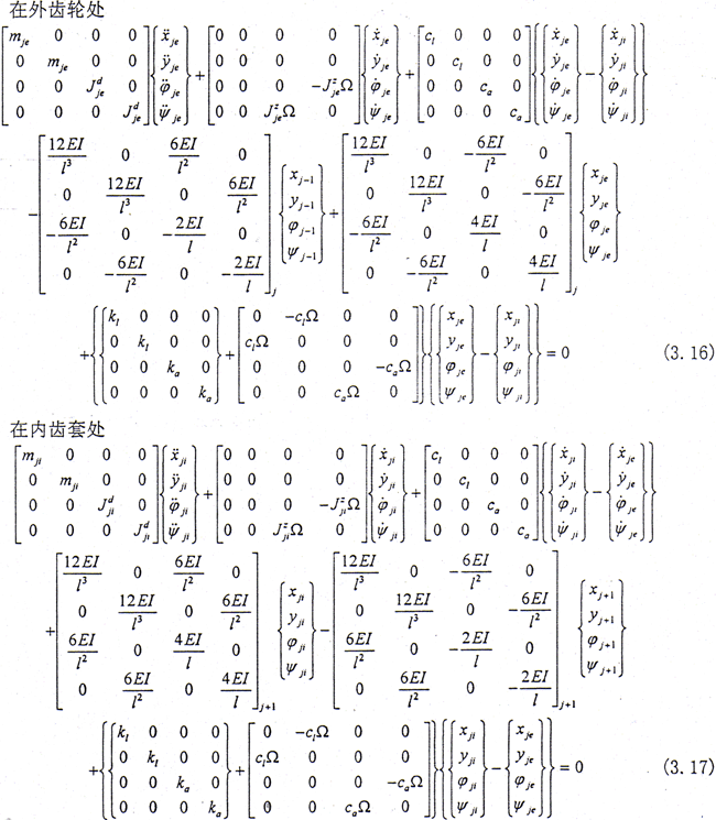 這樣就得到了第j個結(jié)點(外齒輪、內(nèi)齒套)處的彎曲運動微分方程。