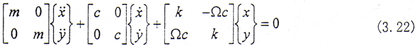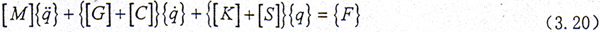 在式(3.20)中,[M],[C],[K]分別為整體系統(tǒng)的廣義質(zhì)量、阻尼和剛度矩陣,這三個矩陣是對稱陣;而[G]是陀螺力陣,[S]是廣義循環(huán)力(或稱之為廣義約束阻尼力)陣,這二個矩陣是反對稱陣;{F}為外激振力陣。