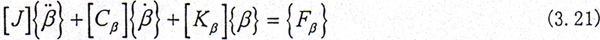 [J],[Cβ],[Kβ]分別為系統(tǒng)的轉(zhuǎn)動慣量陣,扭轉(zhuǎn)阻尼力矩和扭轉(zhuǎn)剛度陣;