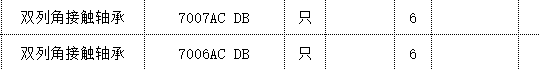 角接觸軸承 7001C GB/T292-1994  8件,雙角接觸軸承 7007AC DB  6只,雙角接觸軸承 7006AC DB  6只。