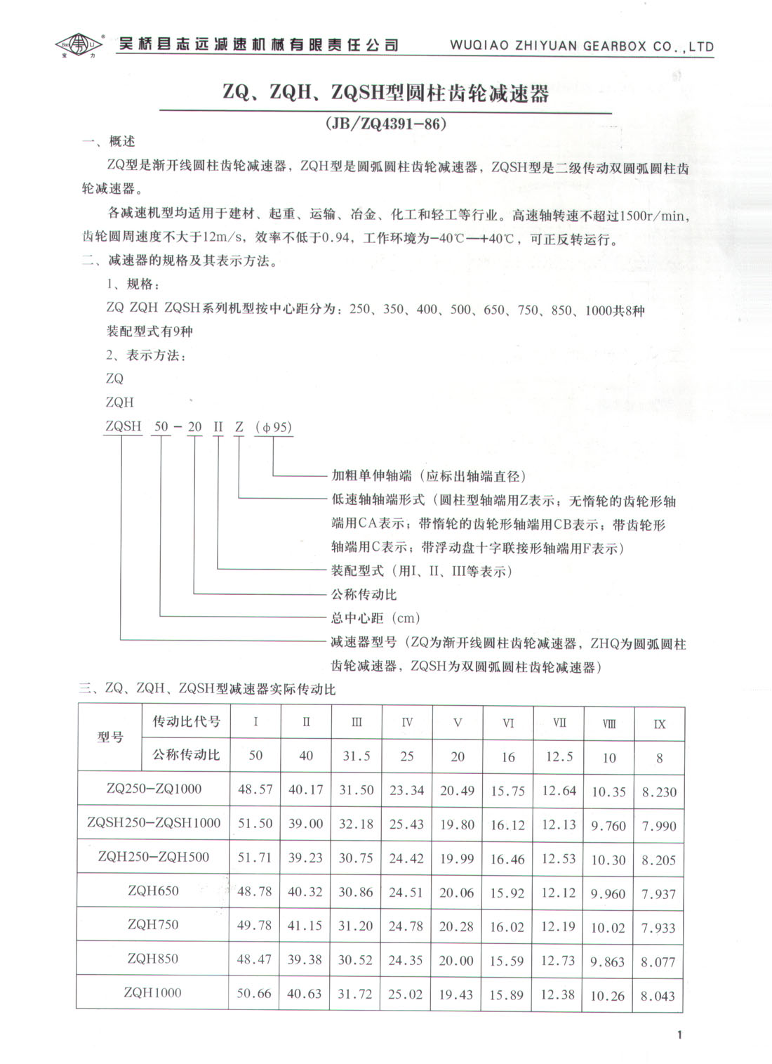 ZQ ZQH ZQSH圓柱齒輪減速機(jī)按中心距分為:250、350、400、500、650、750、850、1000共8種。
