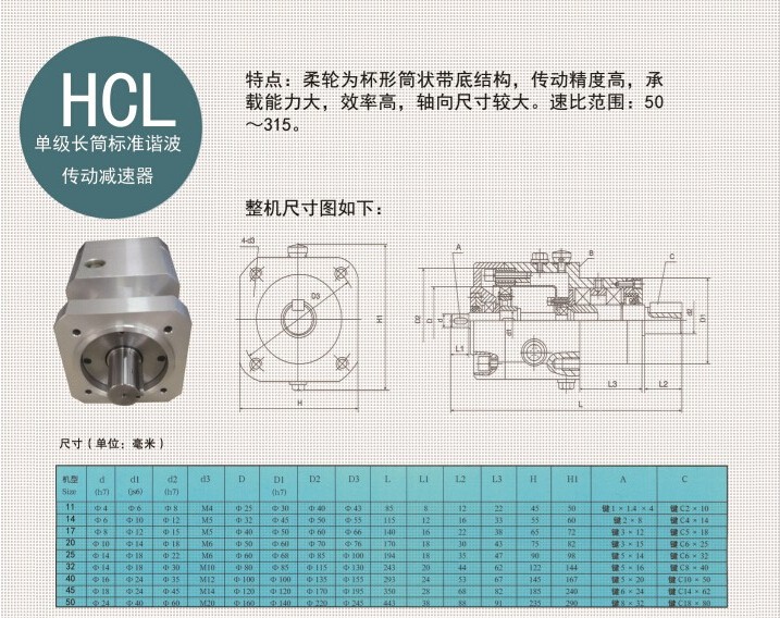 - HCL型長筒單級諧波減速機/HCL-14-100-整機