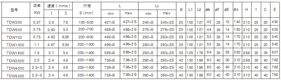 一、電動推桿概述: DT系列電動推桿是一種將電能轉換成往復運動機械能的通用機械手,適用于各種復雜或簡單的工藝流程,具有結構緊湊,安裝方便,使用可靠,維修簡單,節(jié)約能源等優(yōu)點。與液壓氣動系統(tǒng)相比,不但省掉了繁雜的系統(tǒng)和減輕了重量,而且不受氣候及環(huán)境的限制,可實現(xiàn)遠距離集中或自動控制,廣泛應用于冶金、礦山、電力、煤炭、交通、糧食、化工、建材等部門。 二、電動推桿結構與性能: 1、結構: 電動推桿由電動機、減速齒輪、絲桿、銅螺母、導向套、活塞桿、軸承座、軸承座、彈簧、缸筒座、聯(lián)接叉及光電接近開關裝置(用戶選購)等部件所組成。 2、工作原理: 電動機通過一級或二級齒輪減速后,帶動絲杠螺母付,把電動機的旋轉運動變?yōu)橹本運動,利 用電動機正反轉實現(xiàn)推桿往復動作。輸出推拉力相等。通過各種杠桿力臂長度,可以增長行程。 3、過載自動保護功能: 電動推桿內過載自動保護裝置,當推桿行程到極限位置或負載超過額定推力一定數(shù)值時,推桿 將自動切斷電源,起到保護作用,使電動機及其它構件不致?lián)p壞,但不得以此作為正常運行時的限 位開關使用。因此要求在本機上另行配置外行程限位開關裝置,本廠可為用戶配置光電接近開關裝 置,以控制推桿正常起停。 ![]() |