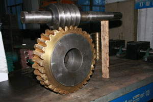 立車主傳動蝸輪副的工作原理立車主傳動蝸輪副與普通蝸輪副的區(qū)別是變導(dǎo)程蝸桿齒的左右兩側(cè)面具有不同的導(dǎo)程,而同一側(cè)的導(dǎo)程則是相等的,以為該蝸桿的齒厚從蝸桿的一端向另一端均勻的逐漸增厚或減薄,所以變導(dǎo)程蝸桿一成變齒厚蝸桿,故可用軸向移動蝸桿的方法來消除或調(diào)整蝸輪副的嚙合間隙。 立車主傳動蝸輪副的嚙合原理與一般蝸輪副的嚙合原理相同,蝸桿的軸向截面相當(dāng)于基本齒條,蝸輪則相當(dāng)于其嚙合的齒輪,雖然蝸桿齒左右側(cè)面具有不同的齒距,但因一側(cè)面的齒距相同,故沒有破壞嚙合條件,當(dāng)軸向移動蝸桿后,也能保證良好嚙合。