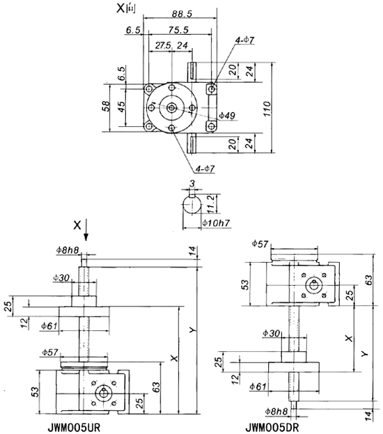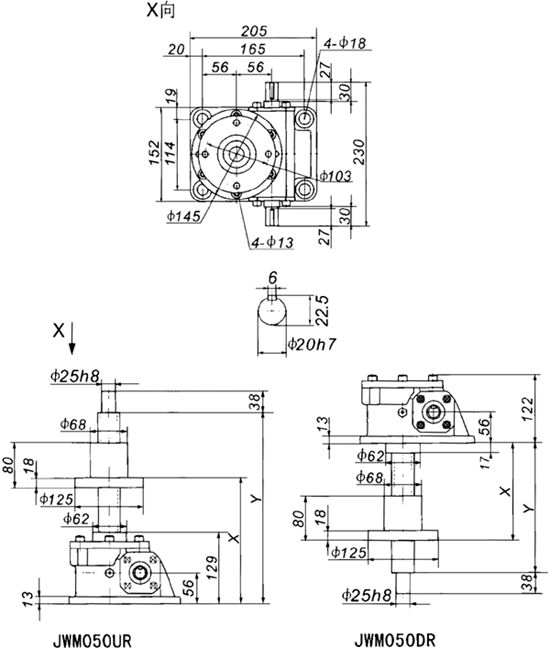 JWM050絲杠升降機外形尺寸