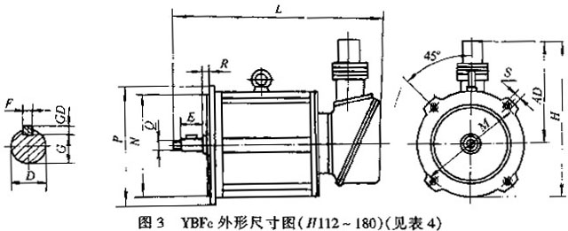 YBF系列風機用電動機無風扇、風罩,依靠軸流風機運轉(zhuǎn)時引入氣流,對電機進行冷卻,電動機的軸伸端帶螺紋。基本安裝方式為B30,電動機安裝在風機風筒上,電機出線盒安裝在非軸伸端。