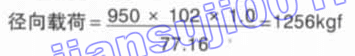 查表1-7,TCJ250機(jī)座,輸出轉(zhuǎn)速為100r/min時(shí),允許的最大徑向載荷 為1736Kgf,校核后獲得通過,所選用減速機(jī)型號為TCJYEJ250-100S、B3安裝。
