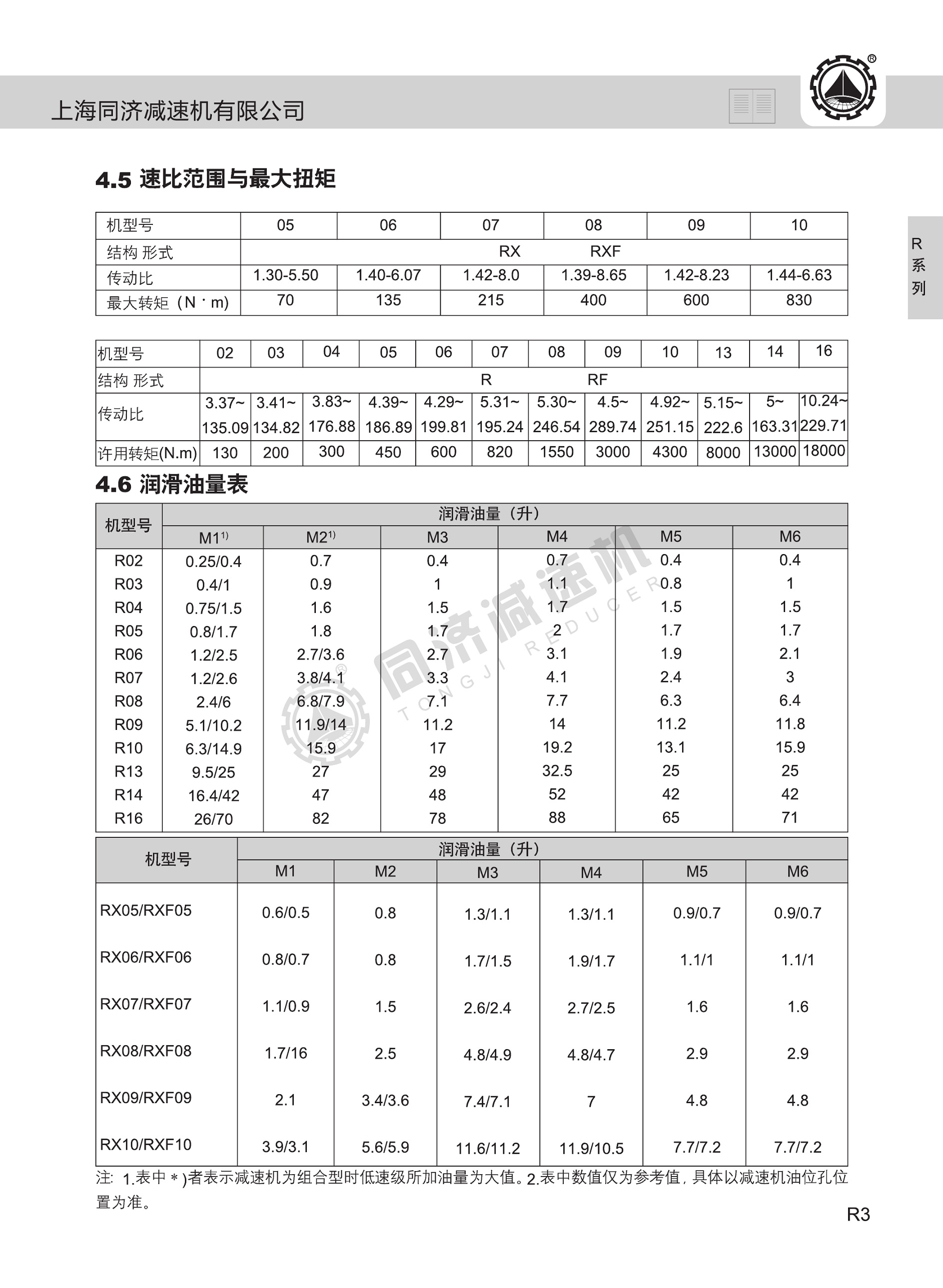 速比范圍:R基本型3.33~289.74,RX型1.3~8.65,R/R組合型可達(dá)到27001